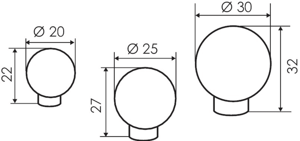 FORMAT, Möbel-Knopf, Durchmesser: 30 mm, Modell: Pluto, Material: Aluminium, Farbton: naturfarbig, Oberfläche: eloxiert, Befestigung: M4 Gewinde, Befestigungsart: zur Verschraubung von der Rückseite, Höhe: 32 mm, Form: Kugelform