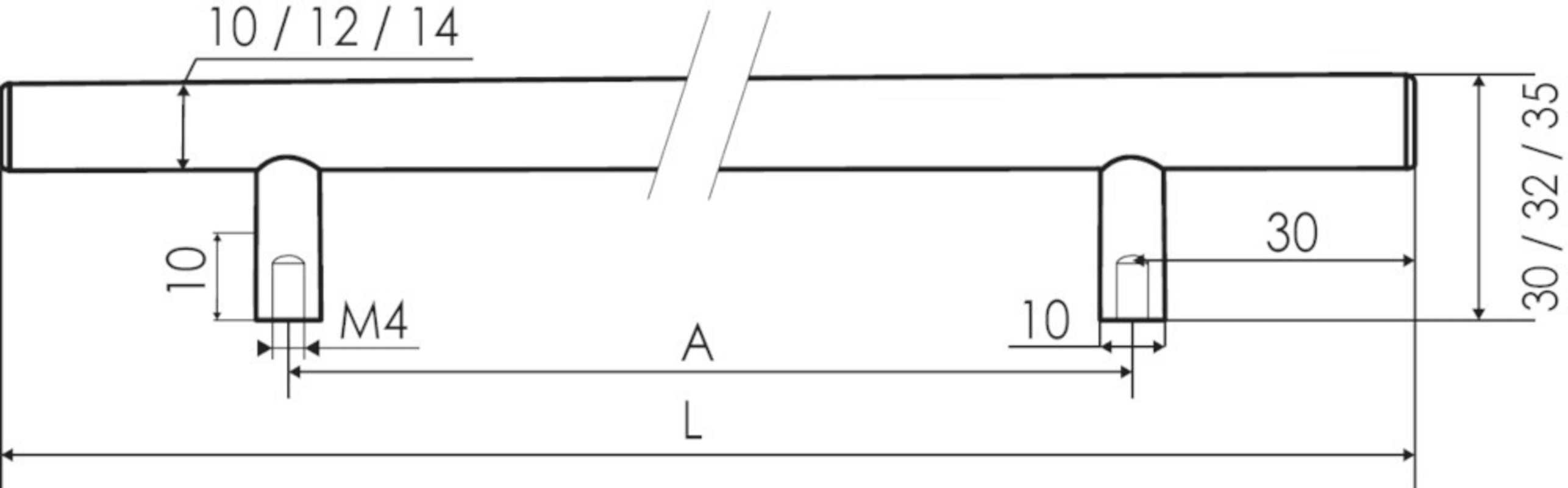 FORMAT, Möbel-Stangengriff, Modell: Puck, Durchmesser: 14 mm, Bohrabstand: 780 mm, Länge: 860 mm, Höhe: 35 mm, Material: Edelstahl, Farbton: edelstahl, Oberfläche: matt, Sockeldurchmesser: 10 mm, Ausführung: hohl, mit Sockel, Befestigung: M4 Gewinde, Befestigungsart: zur Verschraubung von der Rückseite, Anzahl Befestigungspunkte: 2 St., Montage: unsichtbar verschraubt, Lieferung: mit Schrauben