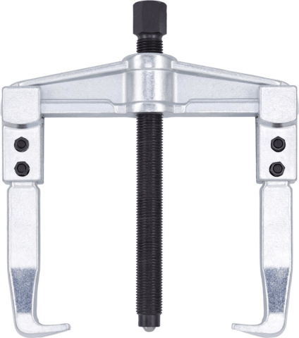 Abzieher, 2-armig• Parallele Abzughaken, durch Umdrehen als Außen- und Innenabzieher verwendbar • Werkzeuglos verstellbar • Zentrierspitze mit Kugel