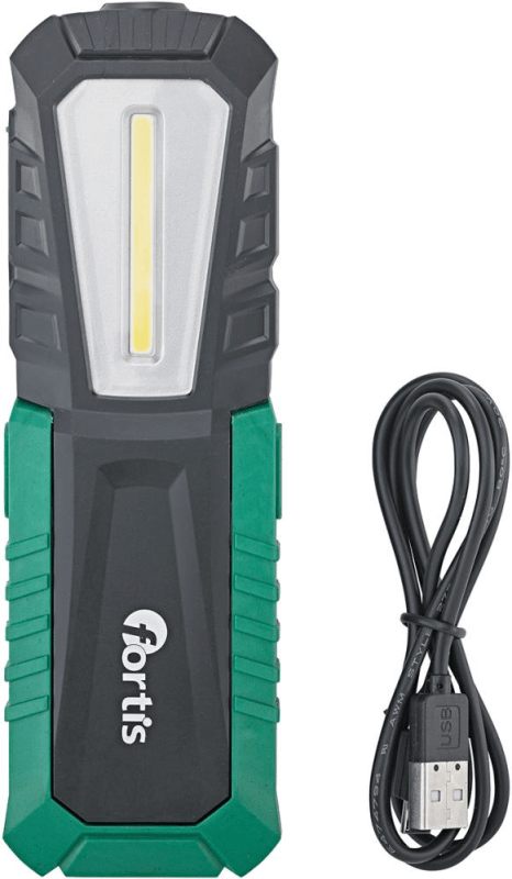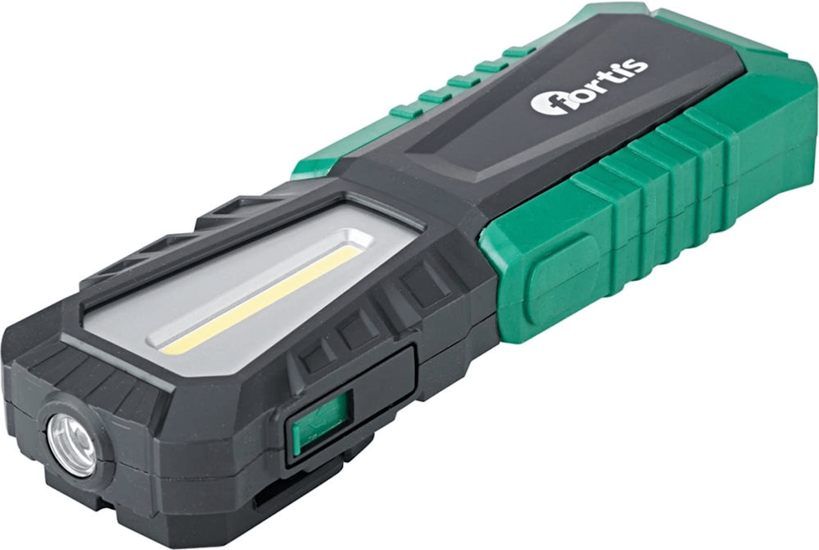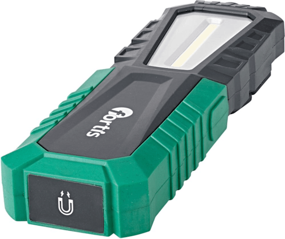 Akku-LED-Arbeitsleuchte• Haupt-/Punktlicht fest verbaute COB-LED • Leuchtstärke in 2 Stufen (100/30 %) einstellbar • Gummiertes Kunststoffgehäuse • 180° schwenkbarer Standfuß • Magnet zur Befestig