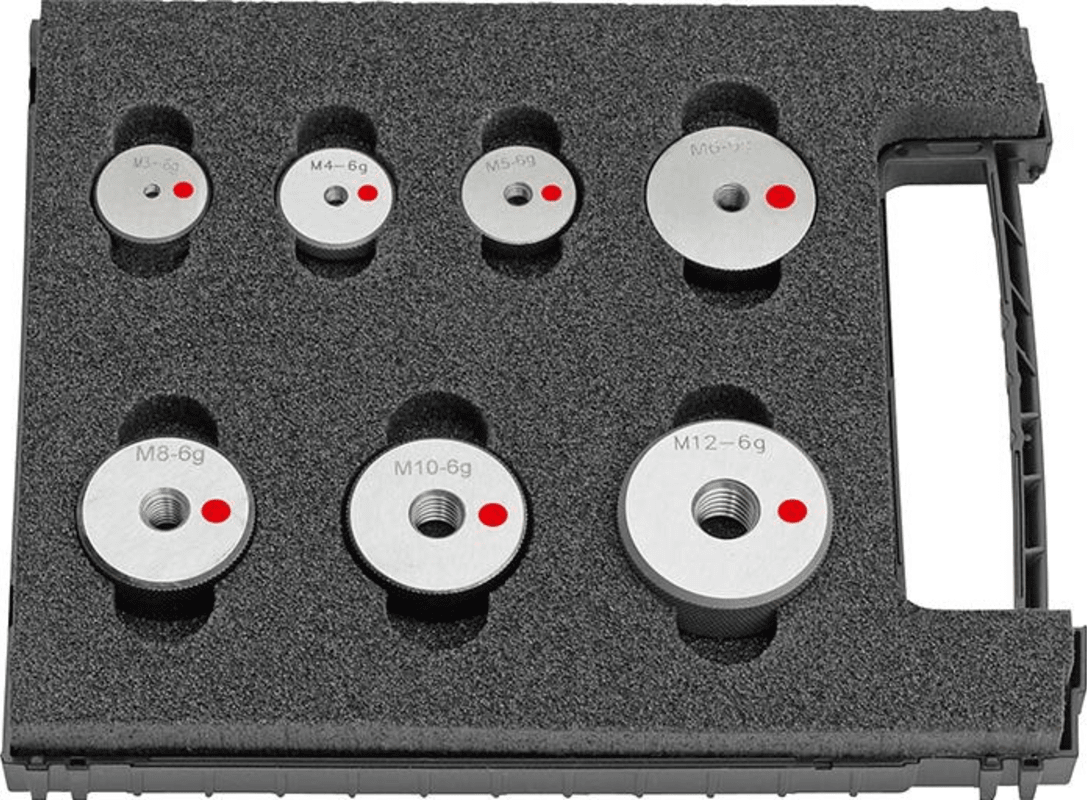 Gewinde-Lehrring-Satz• Metrisches ISO-Gewinde DIN ISO 1502 • Metrisches ISO-Gewinde DIN ISO 1502 • Hochwertiger Lehrenstahl, ganz gehärtet, entspannt und feinstgeschliffen • Toleranzklasse 6g