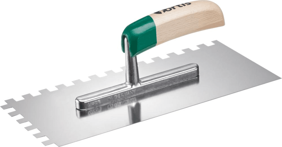 Glättekelle, Edelstahl, gezahnt• Blatt aus Edelstahl, rostfrei • Buchenholzheft • Aluminiumstütze • Für Fliesenkleberarbeiten