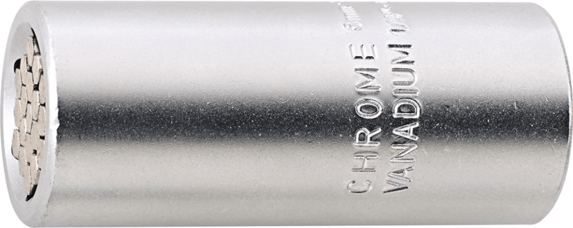 Universal-Steckschlüssel-Einsatz 1/4"• Gehäuse aus legiertem Stahl • Mit gehärteten Stahlstiften • Für Zoll- und metrische Abmessungen geeignet • Stahlstifte passen sich Schrauben sowie Haken- oder