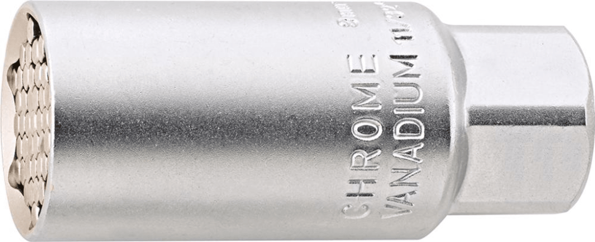 Universal-Steckschlüssel-Einsatz 3/8"• Gehäuse aus legiertem Stahl • Mit gehärteten Stahlstiften • Für Zoll- und metrische Abmessungen geeignet • Stahlstifte passen sich Schrauben sowie Haken- oder