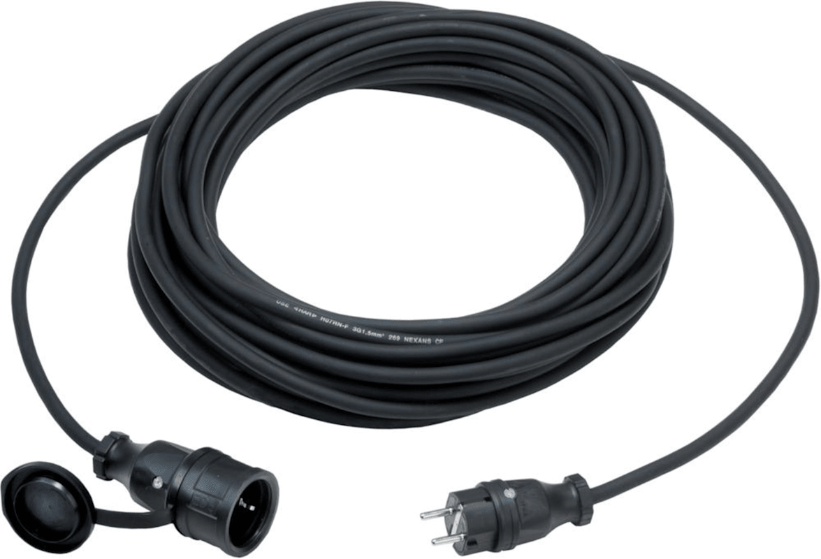 Verlängerungskabel, Neopren und Gummi• Schutzkontaktverlängerung 250 V, 16 A • Schutzkontakt-Stecker und -Kupplung • Kupplung mit Klappdeckel • Für den Einsatz im Innenbereich sowie den dauerhaften