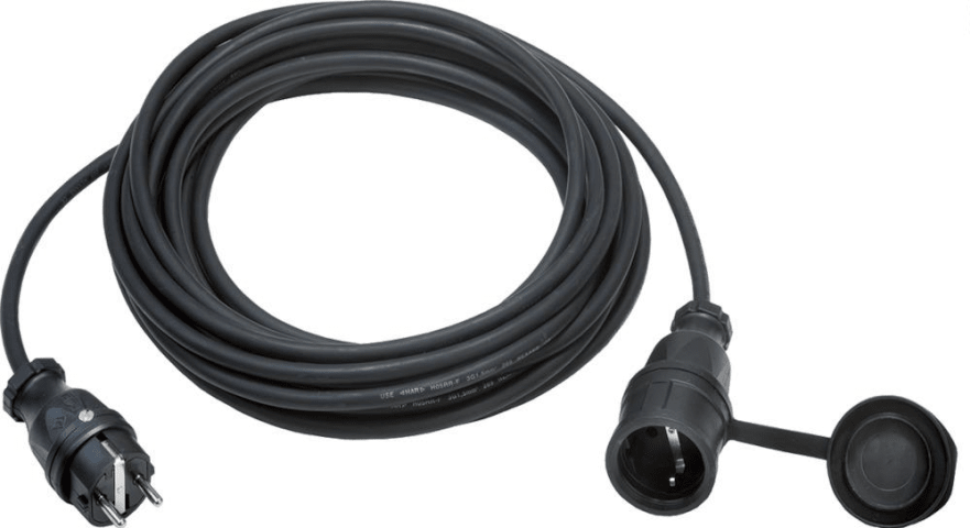 Verlängerungskabel, Gummi und Gummi• Schutzkontakt-Verlängerung 250 V, 16 A • Schutzkontakt-Stecker und -Kupplung • Kupplung mit Klappdeckel • Für den Einsatz im Innenbereich sowie den kurzfristige