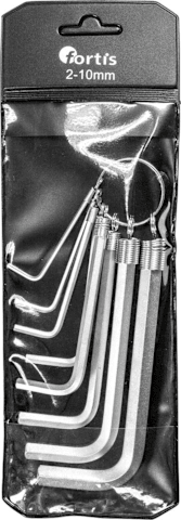 Winkelschraubendreher-Satz für 6-kant• Matt verchromt • S2-Stahl • DIN 911, ISO 2936K Lieferung: In Kunststofftasche, mit Ring.