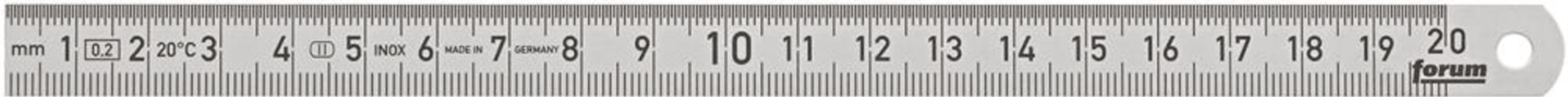 Stahlmaßstab, 0,5-mm-Teilung• Federbandstahl, rostfrei • Teilung abriebfest, unempfindlich gegenüber Chemikalien, Fetten und Ölen • Gute Ableseeigenschaft durch matte Oberflächen • Gerundete Kanten