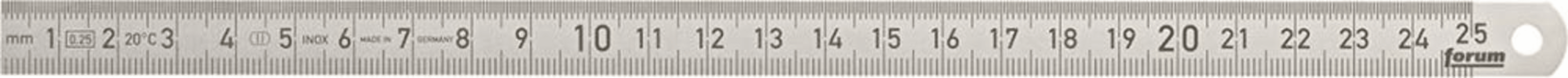FORUM Stahlmaßstab. Aus rostfreiem, hartgewalztem Federstahl, mattierte Oberfläche, gerundete Kanten. EG-Genauigkeitsklasse II, ab 500 mm Länge gekennzeichnet.