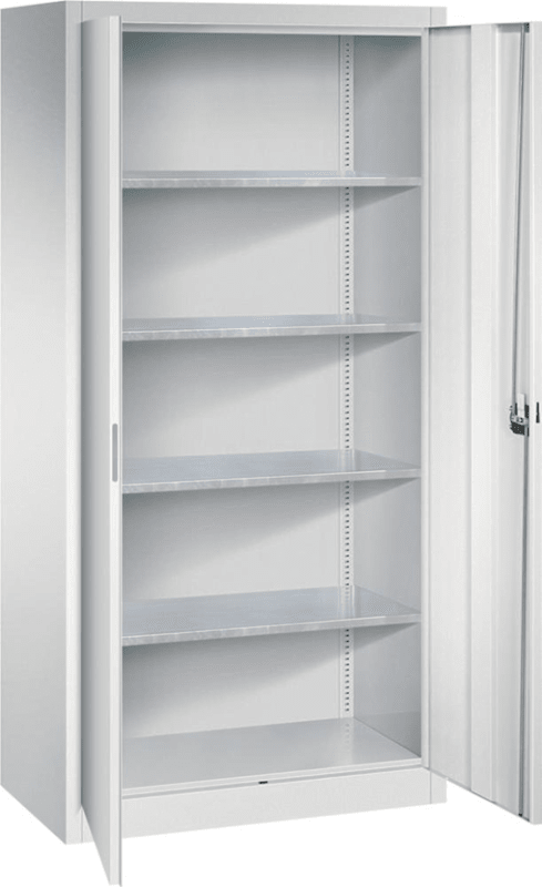 Flügeltürenschrank, Tragkraft Fachboden 70 kg• Vielseitige Verwendungsmöglichkeit • Stabiler Stahlkorpus • Hochwertige Einbrennbeschichtung • Türen: mit mittiger Türverstärkung für eine hohe Stabil
