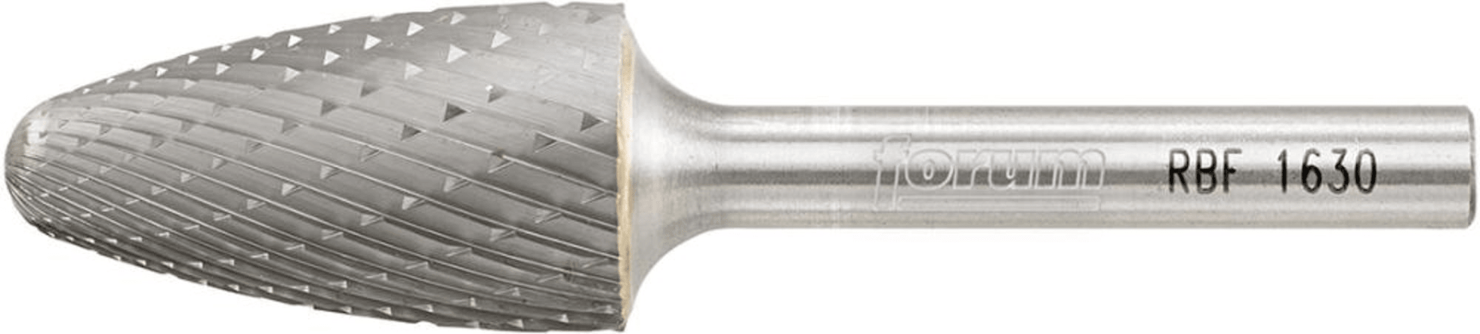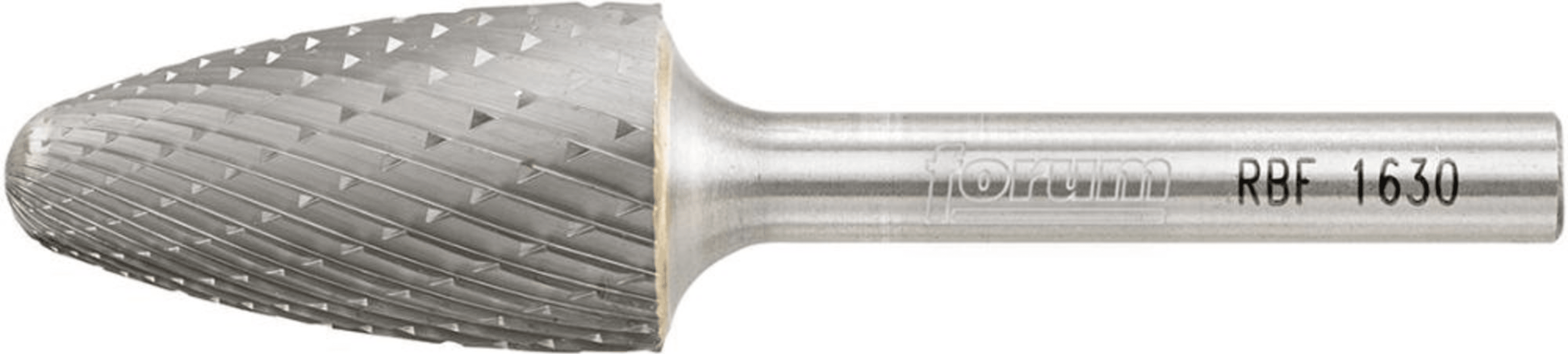 HM-Frässtift RBF, Rundbogenform, Zahnung C• Hoher Materialabtrag • Für NE-Metalle, Stahl und Gusseisen