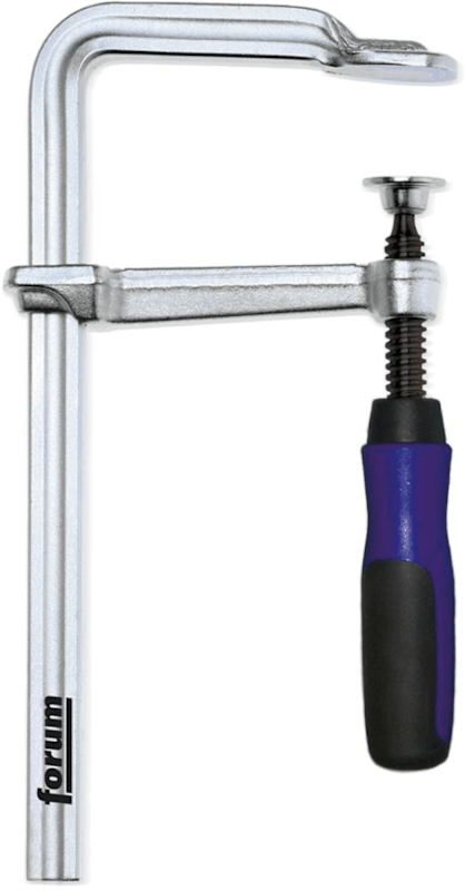 Ganzstahl-Schraubzwinge• Festbügel und Druckplatte aus einem Stück gefertigt • 2-Komponenten-Kunststoffgriff • Trapezgewindespindel oberflächenbeschichtet • Beweglich gelagerte Druckplatte • Spann