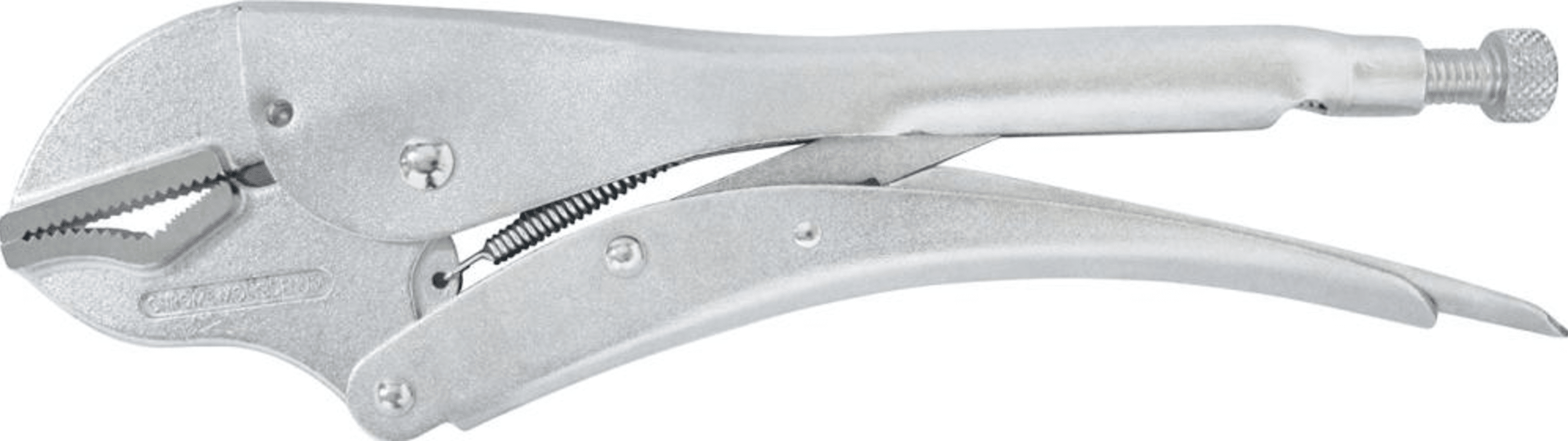 Gripzange• Vernickelt • Zangenkörper aus Chrom-Molybdän-Stahl • Greifbacken gezahnt, mit prismenförmiger Aufnahme unten • Drahtschneider integriert • Einstellung der Spannweite und des Spanndrucks