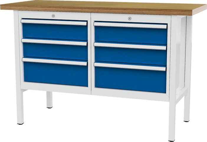 Kastenwerkbank B1500mm 6 Schubladen RAL7035/5010