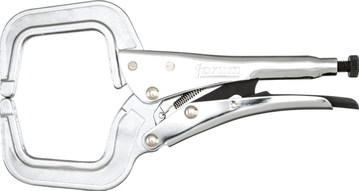 Klemm-Gripzange in C-Form• Vernickelt • Zangenkörper aus Chrom-Molybdän-Stahl • Spannbacken in C-Form • Einstellung der Spannweite und des Spanndruckes mittels Einstellschraube • Zum übergreifende