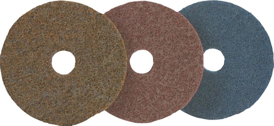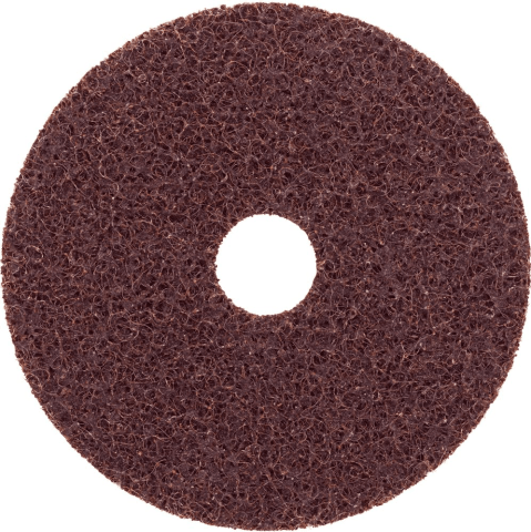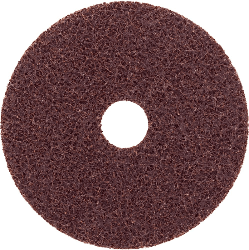 Klett-Vliesschleifscheibe, Korund• Korund • Faservlies • Gewebeunterlage mit vorgestanztem Innenkern, dadurch herausnehmbar (Zentrierung) • Bessere Haftung und genauere Positionierung auf dem Stütz