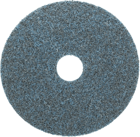 Klett-Vliesschleifscheibe, Korund• Korund • Faservlies • Gewebeunterlage mit vorgestanztem Innenkern, dadurch herausnehmbar (Zentrierung) • Bessere Haftung und genauere Positionierung auf dem Stütz