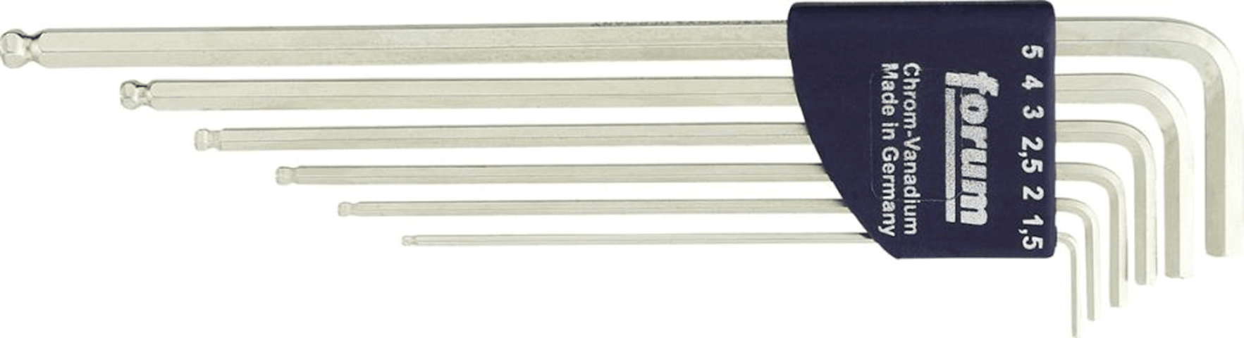 Winkelschraubendreher-Satz für 6-kant, mit Kugelkopf, lang• Vernickelt • Chrom-Vanadium-Stahl • In Anlehnung an ISO 2936 L (DIN 911 L) Lieferung: Im Kunststoffhalter.
