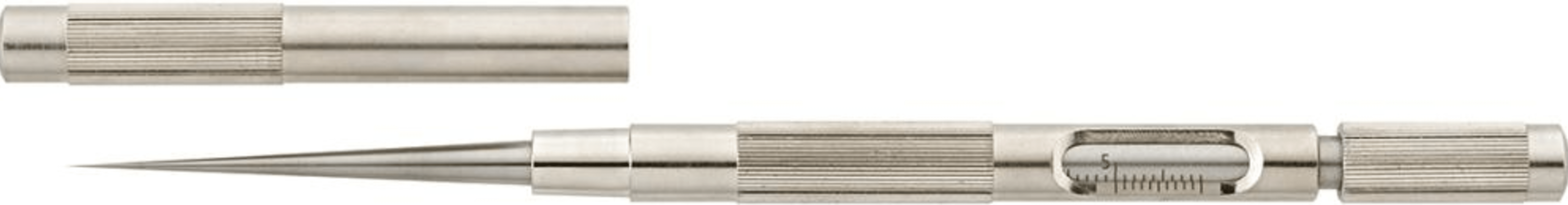 FORUM Präzisions-DüsenlehreGehärtete und geschliffene runde Messnadel, Kegel 1:10, Ablesung 0,1 mm, Gehäuse vernickelt.Lieferumfang: Düsenlehre, Etui.
