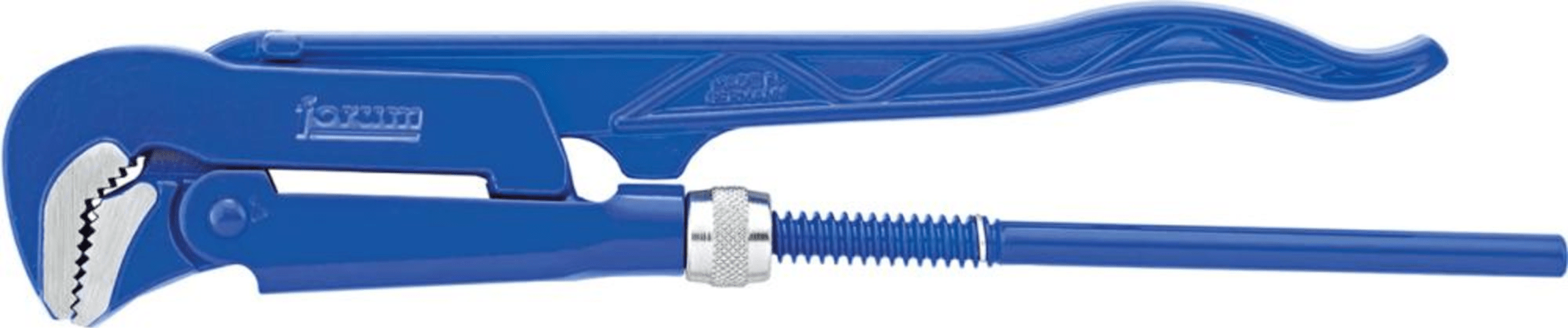 Rohrzange 90°• Chrom-Vanadium-Spezialstahl, gesenkgeschmiedet • Maulbereich induktiv gehärtet und geschliffen • DIN 5234 A • Schwedisches Modell • Unverlierbare Stellmutter • Backen rutschfest du