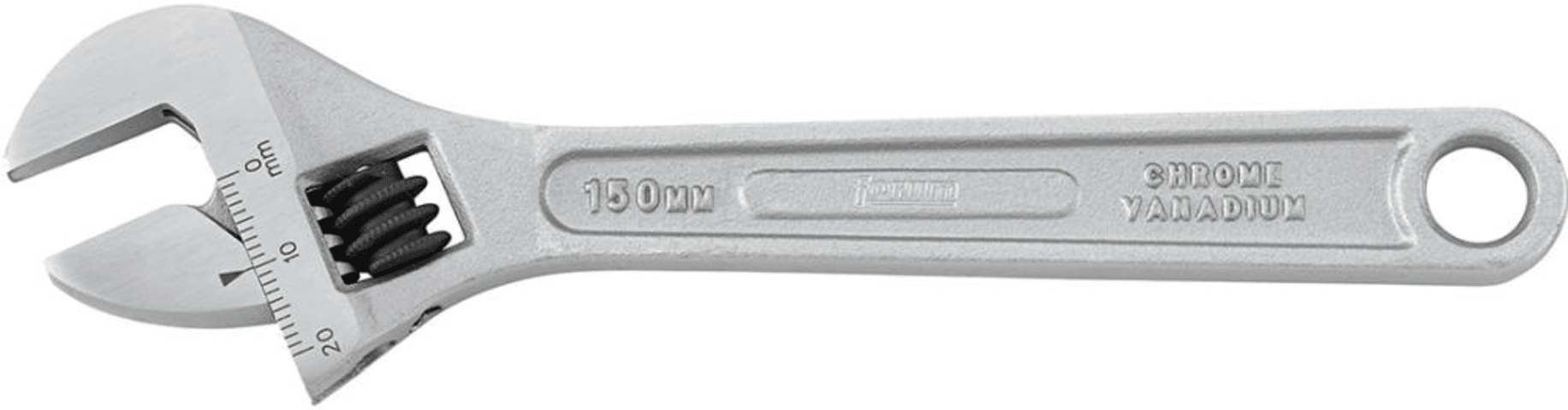 Rollgabelschlüssel• Matt verchromt • Chrom-Vanadium-Stahl, geschmiedet • Maulstellung 15° • Kopf geschliffen • DIN 3177 A, ISO 6787 • Gelaserte Maßskala in mm und inch