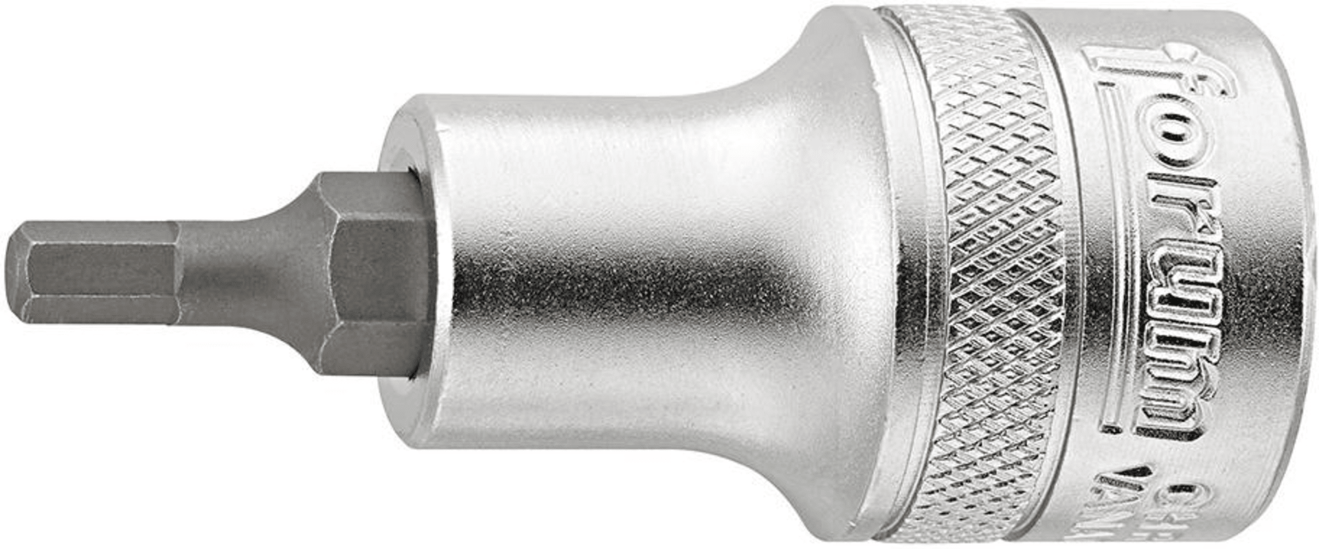 FORUM Schraubendreher-Einsatz 1/2", InnensechskantInnenvierkante nach DIN 3120 - C 12,5, ISO 1174. Mit Stiftsicherung. Spitzen eingepresst und brüniert, aus Chrom-Vanadium-Stahl, mattverchromt.