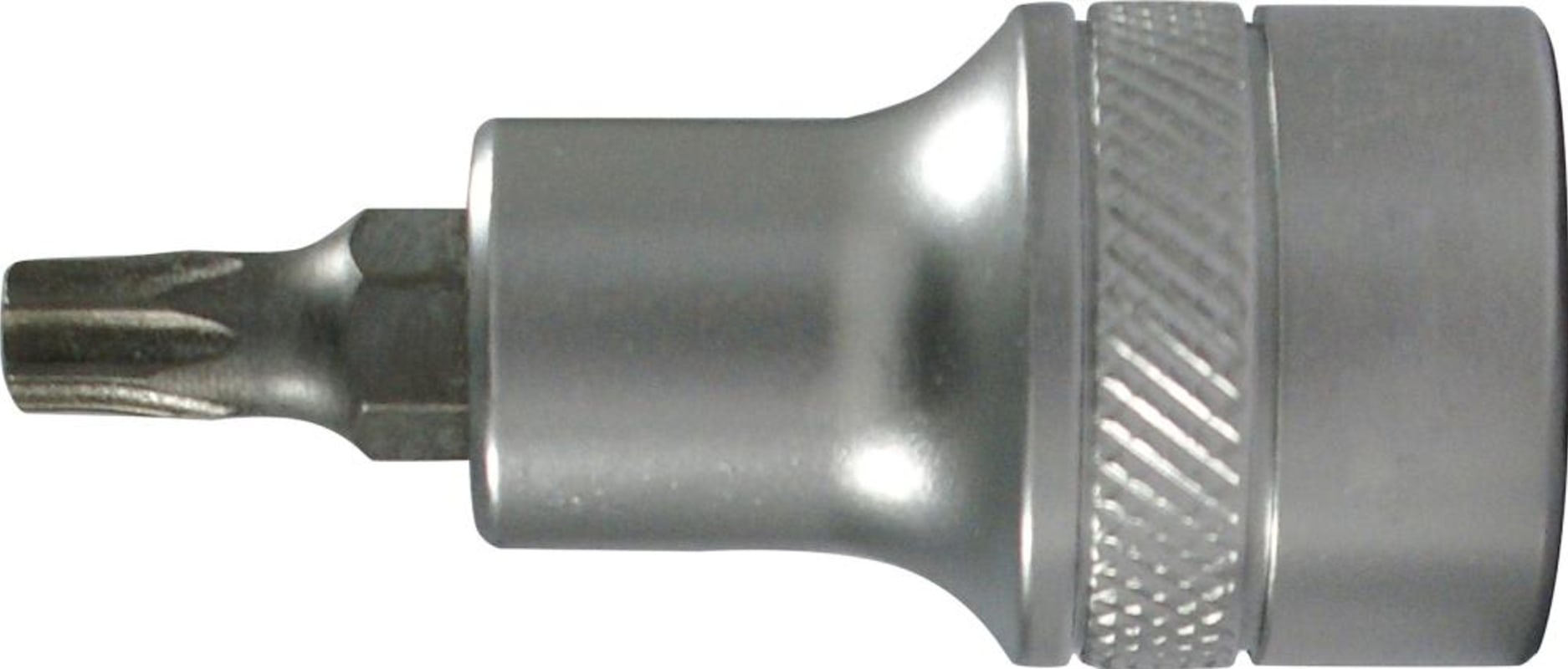 Schraubendreher-Einsatz 1/2" für TORX®-Schrauben• Seidenmattes Finish • Qualitätsstahl C60 • Spitze matt grau • 4-kant-Antrieb DIN 3120-D 12,5; ISO 1174 • Kugelfangrille • Griffig gerändelt