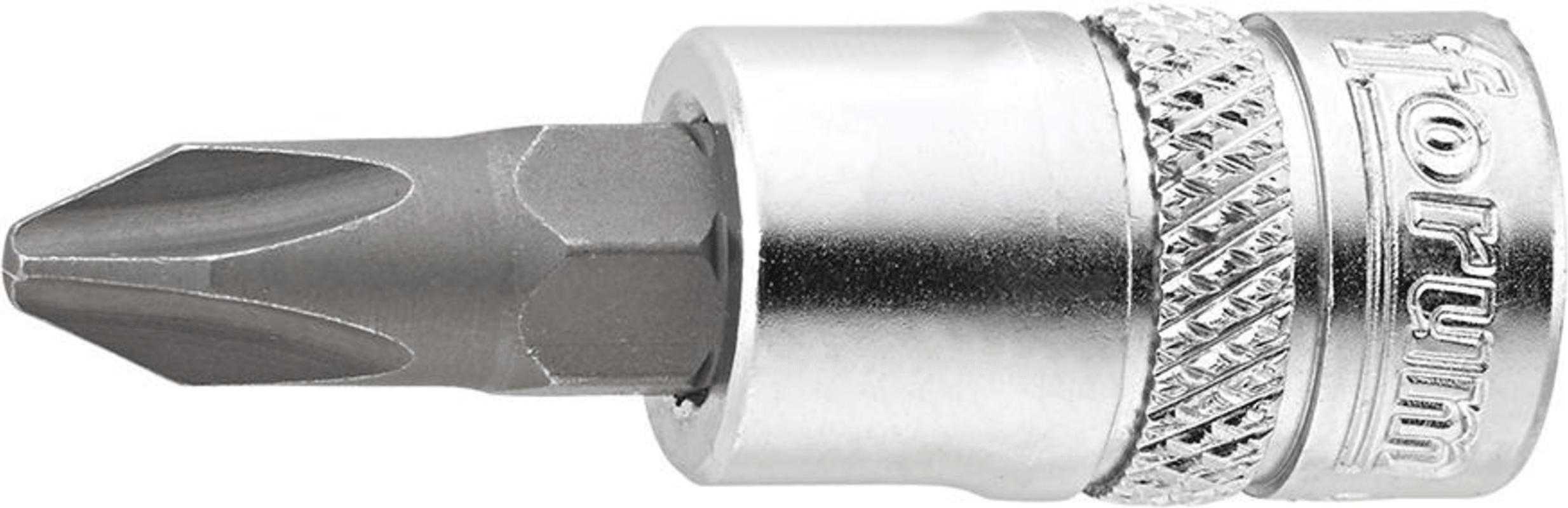 FORUM Schraubendrehereinsatz 1/4", Kreuzschlitz (PH)Innenvierkante nach DIN 3120 - C 6,3, ISO 1174, mit Kugelfangrille, Chrom-Vanadium-Stahl, mattverchromt, mit eingepresster Spitze, matt grau.