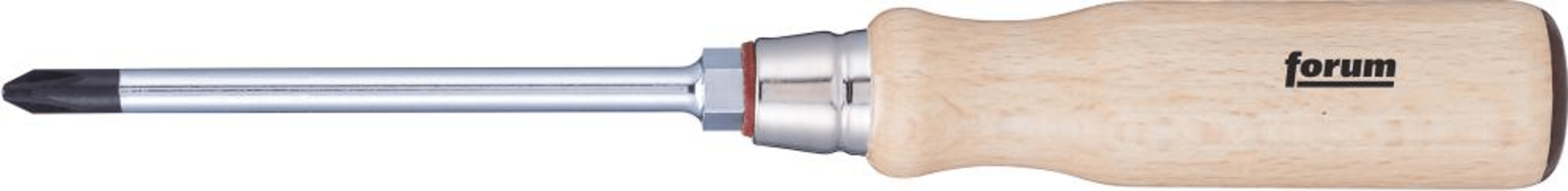 Schraubendreher für Kreuzschlitz-Schrauben PH, mit Holzheft• Runde Klinge, durchgehend • Lederkappe • Verchromt • Chrom-Vanadium-Stahl • Schwarze Spitze • Buchenholz-Griff, versiegelt, mit Lederk
