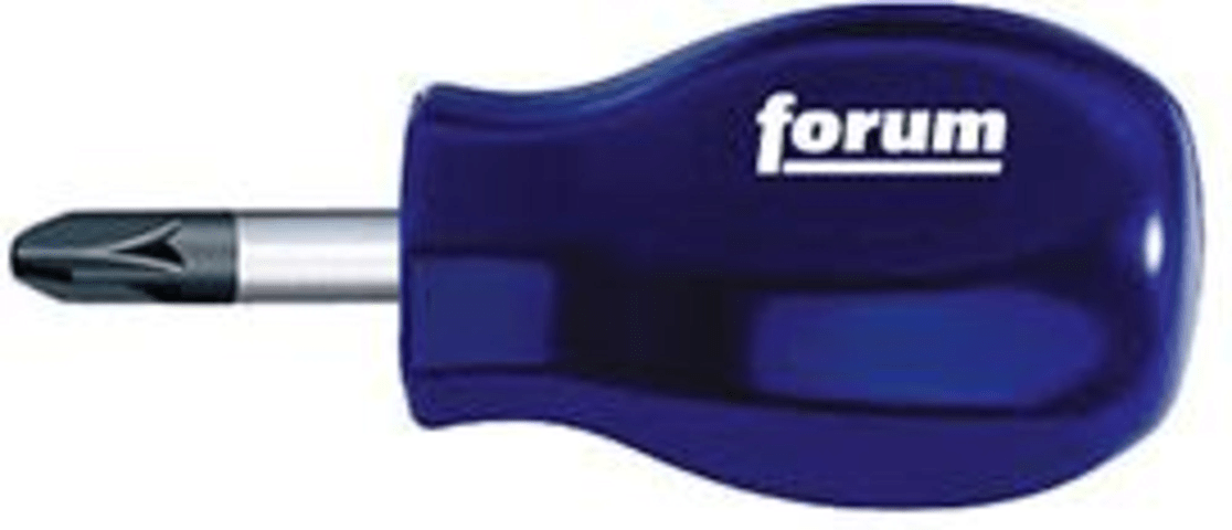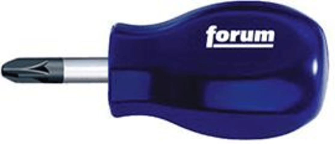 FORUM Kreuzschlitz-Schraubendreher (Pozidriv), kurze AusführungMit runder Klinge aus hochwertigem Chrom-Vanadium-Molybdän-Stahl, glanzverchromt mit schwarzer Präzisionsspitze. Mit ergonomischem Vierkant-Griff mit Abrollschutz.