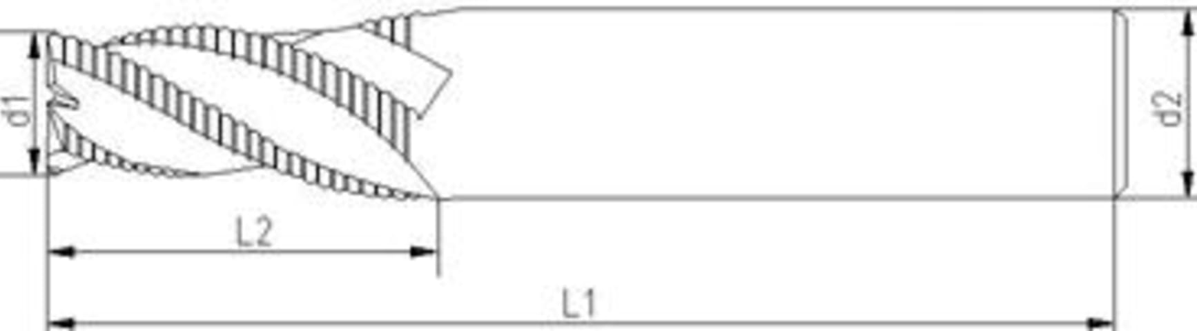 VHM-Schruppfräser, TiAlN-beschichtet• Ausführung: lang • VHM UF • Typ HR • 3–6 Schneiden • Werksnorm • DIN 6535-HB • Drallwinkel 45° • Tauchen/Rampen/Besäumen • Trockenbearbeitung möglich