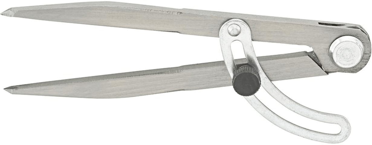 Spitzzirkel mit Stellbogen• Aus Spezialstahl • Mit kantigen Schenkeln • Nietscharnier • Spitzen gehärtet und geschliffen, fein poliert