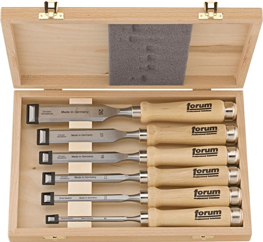 Stechbeitel-Satz mit Holzheft• Chrom-Vanadium-Stahl • Geschmiedet und fein geschliffen • Seitenfase • Weißbuchenheft • Ulmer Form Lieferung: Im Holzkasten.