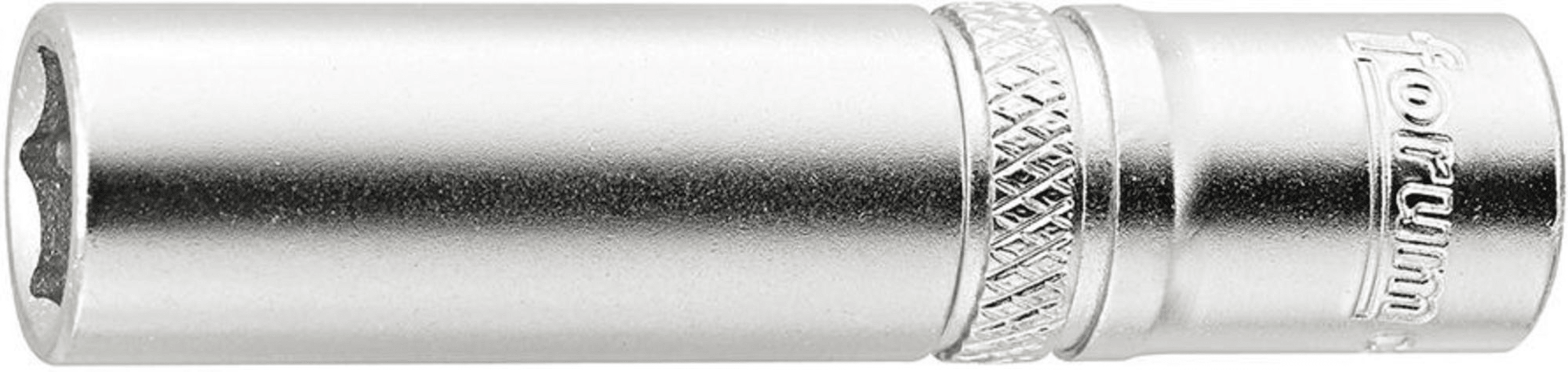 FORUM Steckschlüsseleinsatz 1/4", langDIN 3124, ISO 2725-1, Innenvierkante nach DIN 3120 - C 6,3, ISO 1174, mattverchromt, mit Kugelfangrille. Aus Chrom-Vanadium-Stahl. Mit Flankenabtrieb.