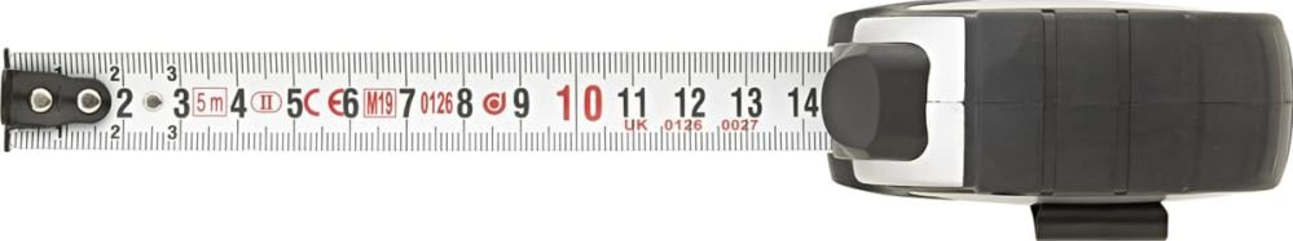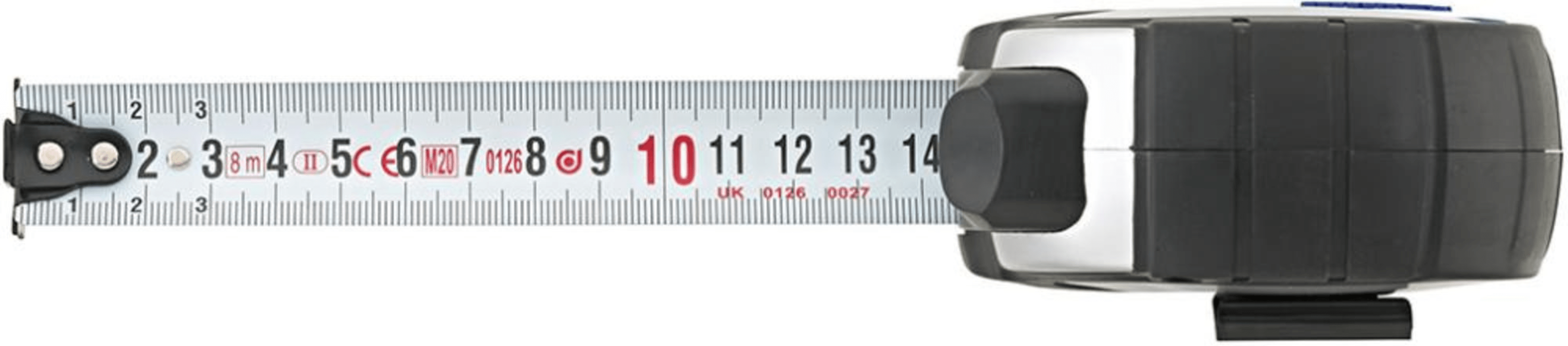 Taschenbandmaß, Autolock• Stoß- und schlagfestes Kunststoffgehäuse mit Teil-Gummiüberzug • Stahlband, weiß • Nylonbeschichtet (verhindert Korrosion und erhöht die Abriebfestigkeit) • mm-/cm-Teilung