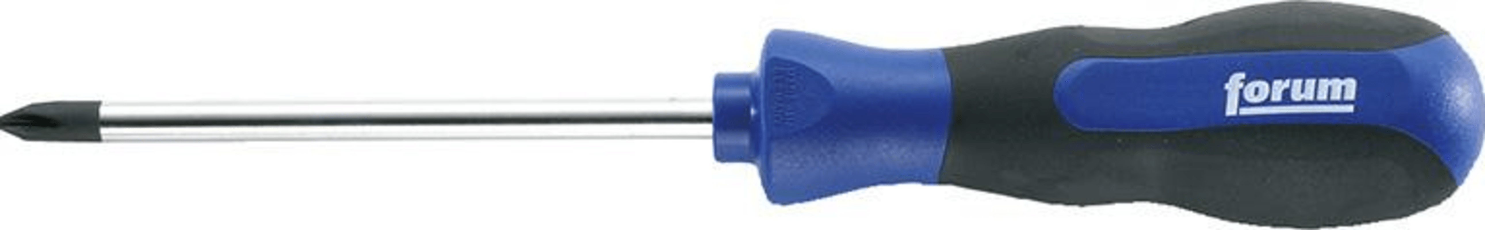 FORUM Kreuzschlitz-Schraubendreher Phillips, mit runder KlingeKlinge aus hochwertigem Chrom-Vanadium-Molybdän-Stahl, glanzverchromt, mit schwarzer Präzisionsspitze. Mit ergonomischem Mehrkomponentengriff und Abrollschutz.