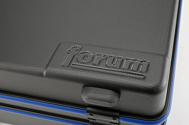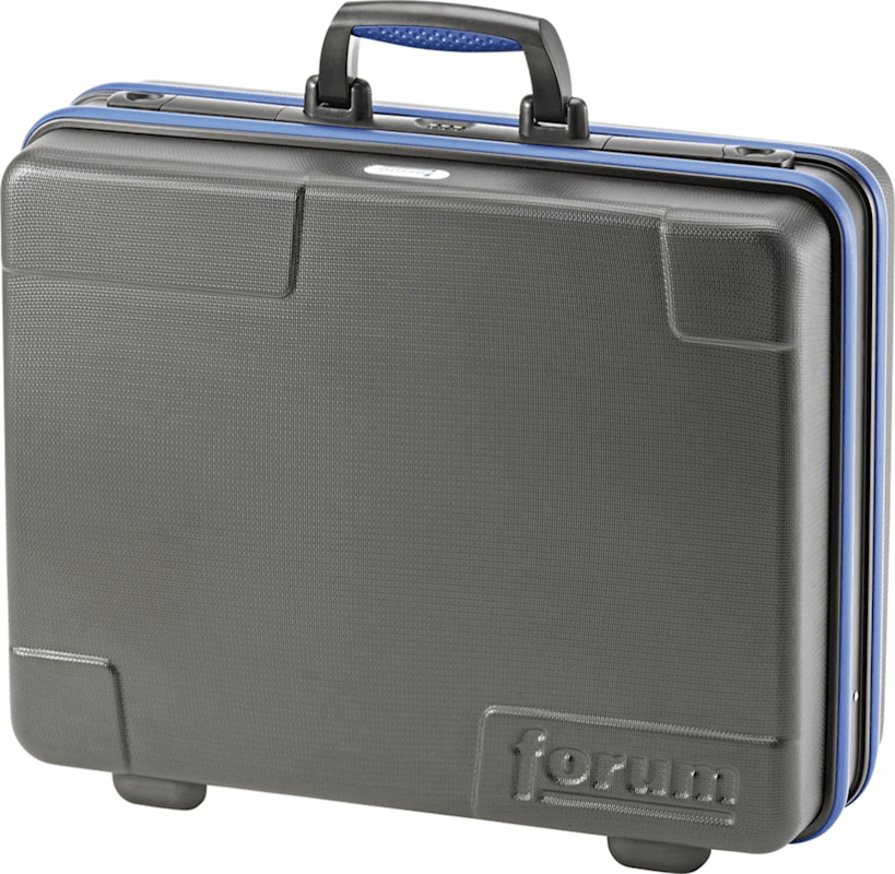 FORUM Werkzeugkoffer ABSKofferschale aus ABS-Kunststoff. Herausnehmbare Werkzeugtafel aus robustem Mehrschichtkunststoff. Werkzeugtafel mit 9 Einsteckfächern auf der Vorder- und 13 Einsteckfächern auf der Rückseite. Abdeckplatte mit 15 Einsteckfächern. Dokumentenfach im Deckel. Individuell einteilbare Bodenschale, mit Abdeckplatte. Abgedeckte Scharniere und Sicherheitsdeckelhalter. Ergonomischer Griff mit Weichzone. Aluminiumrahmen mit Stoßkantenschutz, verschließbar durch 2 Kippzylinderschlösser und Zahlenschloss.Lieferung: mit zwei formstabilen Trennstangen und 8 Endkappen, ohne Inhalt.