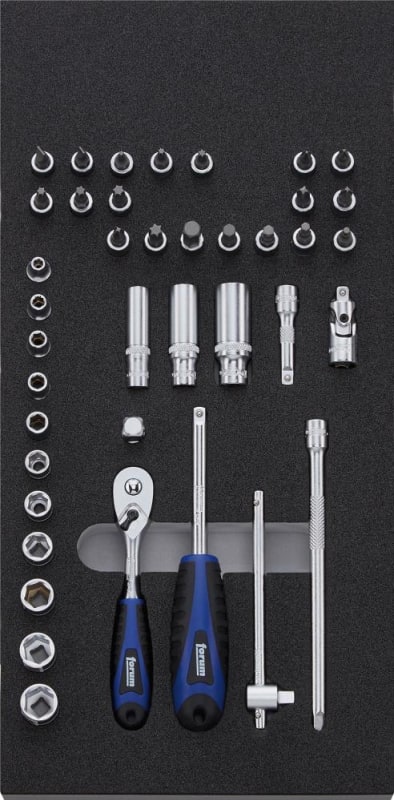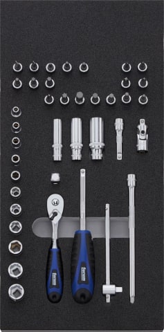 Werkzeugmodul Betätigungswerkzeuge 1/4", leerZur Aufnahme von: 1 Hebel-Umschaltknarre, 72 Zähne 11 6-kant-Steckschlüssel-Einsätze 4; 5; 5,5; 6; 7; 8; 9; 10; 11; 12; 13 mm 3 6-kant-Steckschlüssel-Ei
