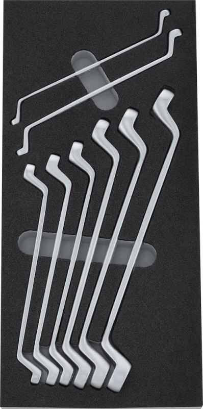 Werkzeugmodul Doppel-Ringschlüssel• 2-farbige Schaumstoffeinlage, fehlende Werkzeuge auf einen Blick erkennen Inhalt: 8 Doppel-Ringschlüssel 6 x 7; 8 x 9; 10 x 11; 12 x 13; 14 x 15; 16 x 17; 18 x