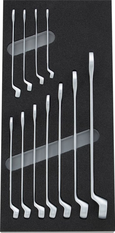 Werkzeugmodul Ring-Maulschlüssel, gekröpft, leer• 2-farbige Schaumstoffeinlage, fehlende Werkzeuge auf einen Blick erkennen Zur Aufnahme von: 11 Ring-Maulschlüssel 8; 9; 10; 11; 12; 13; 14; 15; 17;