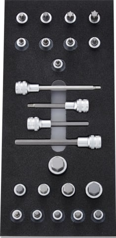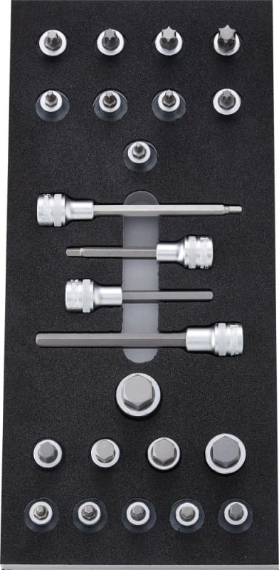 Werkzeugmodul Schraubendreher-Einsatz 1/2", leer• 2-farbige Schaumstoffeinlage, fehlende Werkzeuge auf einen Blick erkennen Zur Aufnahme von: 9 Schraubendreher-Einsätze für 6-kant-Schrauben 4; 5; 6