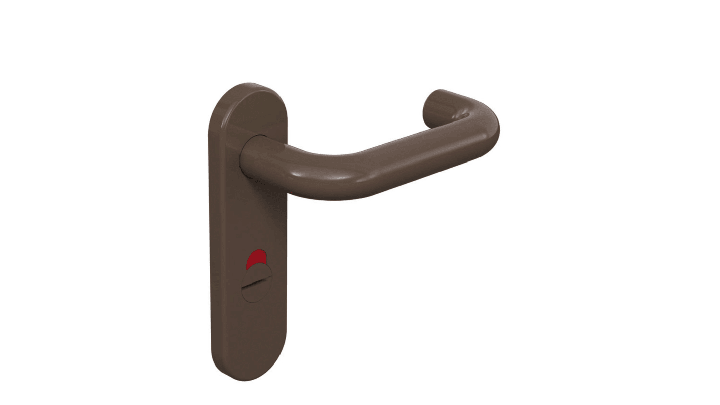 HEWI Drückergarnitur 111R02.210; Produkttyp: Drückergarnitur; Produkttyp (Hersteller): Drückergarnitur; Ausführung: Kurzschild; Befestigungsart: verdeckt verschraubt; Befestigungstechnik: mit Stütznocken; Form: oval; Vierkant: 8 mm; Material: Kunststoff; Material Unterkonstruktion: Kunststoff-Edelstahlverbundbau; Form Türgriff (innen): U-Form; Ausführung Türgriff (innen): mit Stahlkern; Form Türgriff (außen): U-Form; Ausführung Türgriff (außen): mit Stahlkern; Durchmesser Türgriff (innen): 23 mm; Durchmesser Türgriff (außen): 23 mm; Länge Türgriff (innen): 150 mm; Länge Türgriff (außen): 150 mm; Höhe Türgriff (innen): 67 mm; Höhe Türgriff (außen): 67 mm; Schildbreite außen: 46 mm; Schildbreite innen: 46 mm; Schildlänge außen: 168 mm; Schildlänge innen: 168 mm; Schildstärke außen: 11 mm; Schildstärke innen: 11 mm; Lagerung: Doppellager,festdrehbar; Einsatzbereich: Objekttür,Zimmertür; Türart: Vollblatt; Türwerkstoff: Stahl,Holz; Norm: DIN 18255,DIN EN 1906,DIN 18040; Zulassung: für Fluchttüren; Anwendung: außen/innen; Lochung: WC Schauscheibe/Schlitzkopf; Entfernung: 78 mm; Riegel-Vierkant: 8 mm; DIN-Richtung: DIN Links-Rechts; Farbe: braun; Farbton: umbra; Oberfläche: hochglanz; Technik: R-Technik; Ausführung Vierkant: Vierkantstift; Türstärke min.: 38,1 mm; Türstärke max.: 43 mm
