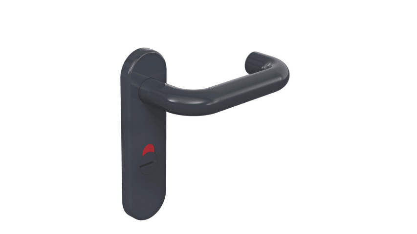 HEWI Drückergarnitur 111R02.210; Produkttyp: Drückergarnitur; Produkttyp (Hersteller): Drückergarnitur; Ausführung: Kurzschild; Befestigungsart: verdeckt verschraubt; Befestigungstechnik: mit Stütznocken; Form: oval; Vierkant: 8 mm; Material: Kunststoff; Material Unterkonstruktion: Kunststoff-Edelstahlverbundbau; Form Türgriff (innen): U-Form; Ausführung Türgriff (innen): mit Stahlkern; Form Türgriff (außen): U-Form; Ausführung Türgriff (außen): mit Stahlkern; Durchmesser Türgriff (innen): 23 mm; Durchmesser Türgriff (außen): 23 mm; Länge Türgriff (innen): 150 mm; Länge Türgriff (außen): 150 mm; Höhe Türgriff (innen): 67 mm; Höhe Türgriff (außen): 67 mm; Schildbreite außen: 46 mm; Schildbreite innen: 46 mm; Schildlänge außen: 168 mm; Schildlänge innen: 168 mm; Schildstärke außen: 11 mm; Schildstärke innen: 11 mm; Lagerung: Doppellager,festdrehbar; Einsatzbereich: Objekttür,Zimmertür; Türart: Vollblatt; Türwerkstoff: Stahl,Holz; Norm: DIN 18255,DIN EN 1906,DIN 18040; Zulassung: für Fluchttüren; Anwendung: außen/innen; Lochung: WC Schauscheibe/Schlitzkopf; Entfernung: 78 mm; Riegel-Vierkant: 8 mm; DIN-Richtung: DIN Links-Rechts; Farbe: grau; Farbton: anthrazitgrau; Oberfläche: hochglanz; Technik: R-Technik; Ausführung Vierkant: Vierkantstift; Türstärke min.: 38,1 mm; Türstärke max.: 43 mm