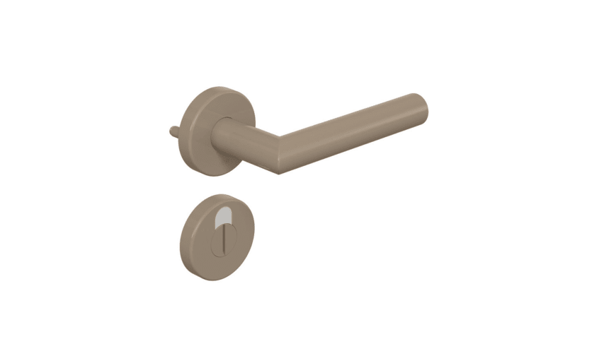 HEWI Drückergarnitur 162PCR02.230; Produkttyp: Drückergarnitur; Produkttyp (Hersteller): Drückergarnitur; Ausführung: Rosette; Befestigungsart Drückerrosette (außen): verdeckt verschraubt; Befestigungsart Drückerrosette (innen): verdeckt verschraubt; Befestigungstechnik: mit Stütznocken; Montageart: aufliegend; Form Drückerrosette: rund; Form Schlüsselrosette (außen): rund; Form Schlüsselrosette (innen): rund; Vierkant: 8,5 mm; Material: Kunststoff; Material Türdrücker: Kunststoff; Material Rosetteneinleger: Kunststoff; Material Unterkonstruktion (Griffrosette): Kunststoff-Stahlverbundbau; Form Türgriff (innen): Gehrung; Form Türgriff (außen): Gehrung; Durchmesser Türgriff (innen): 21,3 mm; Durchmesser Türgriff (außen): 21,3 mm; Durchmesser Schlüsselrosette: 55 mm; Länge Türgriff (innen): 135 mm; Länge Türgriff (außen): 135 mm; Höhe Türgriff (innen): 62 mm; Höhe Türgriff (außen): 62 mm; Durchmesser Drückerrosette (außen): 55 mm; Durchmesser Drückerrosette (innen): 55 mm; Höhe Drückerrosette (außen): 10 mm; Höhe Drückerrosette (innen): 10 mm; Höhe Schlüsselrosette (außen): 10 mm; Höhe Schlüsselrosette (innen): 10 mm; Lagerung: wartungsfreies Gleitlager,festdrehbar; Einsatzbereich: Zimmertür,Objekttür; Türart: Vollblatt; Türwerkstoff: Holz,Stahl; Lochung: WC Schauscheibe/Schlitzkopf; Riegel-Vierkant: 7 mm; DIN-Richtung: DIN Links-Rechts; Material Rosette: Kunststoff; Farbe: braun; Farbton: sand; Oberfläche: hochglanz; Oberfläche Türdrücker: beschichtet; Oberfläche Rosette: beschichtet; Oberfläche Rosetteneinleger: beschichtet; Material Unterkonstruktion (Schlüsselrosette): Kunststoff-Stahlverbundbau; Technik: R-Technik; Ausführung Vierkant: Vierkantstift; Türstärke min.: 38,1 mm; Türstärke max.: 43 mm; Norm: DIN 18255,DIN EN 1906