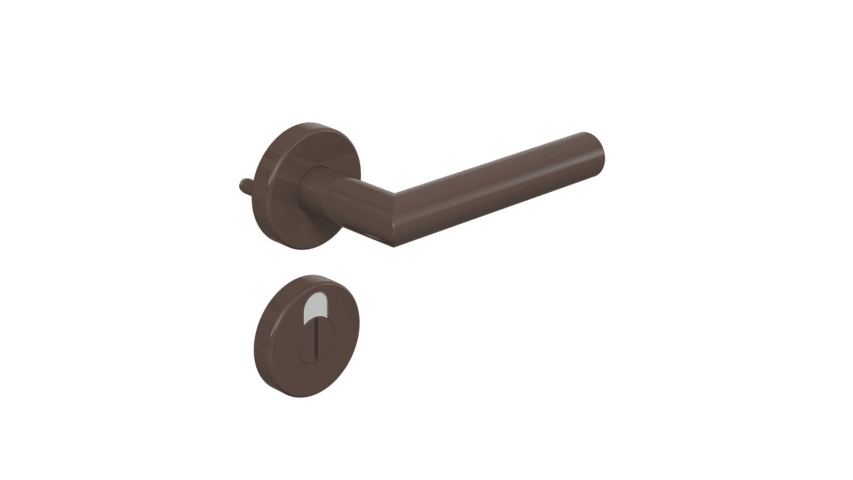HEWI Drückergarnitur 162PCR02.230; Produkttyp: Drückergarnitur; Produkttyp (Hersteller): Drückergarnitur; Ausführung: Rosette; Befestigungsart Drückerrosette (außen): verdeckt verschraubt; Befestigungsart Drückerrosette (innen): verdeckt verschraubt; Befestigungstechnik: mit Stütznocken; Montageart: aufliegend; Form Drückerrosette: rund; Form Schlüsselrosette (außen): rund; Form Schlüsselrosette (innen): rund; Vierkant: 8,5 mm; Material: Kunststoff; Material Türdrücker: Kunststoff; Material Rosetteneinleger: Kunststoff; Material Unterkonstruktion (Griffrosette): Kunststoff-Stahlverbundbau; Form Türgriff (innen): Gehrung; Form Türgriff (außen): Gehrung; Durchmesser Türgriff (innen): 21,3 mm; Durchmesser Türgriff (außen): 21,3 mm; Durchmesser Schlüsselrosette: 55 mm; Länge Türgriff (innen): 135 mm; Länge Türgriff (außen): 135 mm; Höhe Türgriff (innen): 62 mm; Höhe Türgriff (außen): 62 mm; Durchmesser Drückerrosette (außen): 55 mm; Durchmesser Drückerrosette (innen): 55 mm; Höhe Drückerrosette (außen): 10 mm; Höhe Drückerrosette (innen): 10 mm; Höhe Schlüsselrosette (außen): 10 mm; Höhe Schlüsselrosette (innen): 10 mm; Lagerung: wartungsfreies Gleitlager,festdrehbar; Einsatzbereich: Zimmertür,Objekttür; Türart: Vollblatt; Türwerkstoff: Holz,Stahl; Lochung: WC Schauscheibe/Schlitzkopf; Riegel-Vierkant: 7 mm; DIN-Richtung: DIN Links-Rechts; Material Rosette: Kunststoff; Farbe: braun; Farbton: umbra; Oberfläche: hochglanz; Oberfläche Türdrücker: beschichtet; Oberfläche Rosette: beschichtet; Oberfläche Rosetteneinleger: beschichtet; Material Unterkonstruktion (Schlüsselrosette): Kunststoff-Stahlverbundbau; Technik: R-Technik; Ausführung Vierkant: Vierkantstift; Türstärke min.: 38,1 mm; Türstärke max.: 43 mm; Norm: DIN 18255,DIN EN 1906
