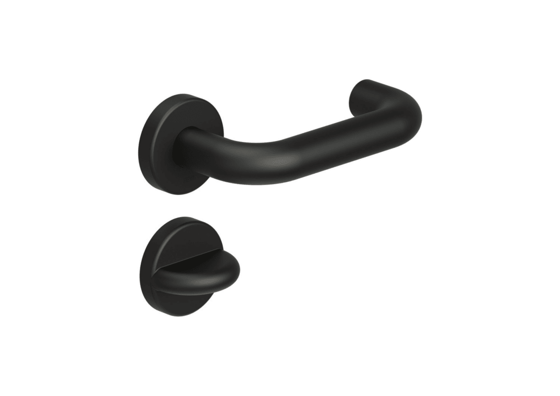 HEWI Drückergarnitur 111PBR02.230; Produkttyp: Drückergarnitur; Produkttyp (Hersteller): Drückergarnitur; Ausführung: Rosette; Befestigungsart Drückerrosette (außen): verdeckt verschraubt; Befestigungsart Drückerrosette (innen): verdeckt verschraubt; Befestigungstechnik: mit Stütznocken; Montageart: aufliegend; Form Drückerrosette: rund; Form Schlüsselrosette (außen): rund; Form Schlüsselrosette (innen): rund; Vierkant: 8 mm; Material: Kunststoff; Material Türdrücker: Kunststoff; Material Rosetteneinleger: Kunststoff; Material Unterkonstruktion (Griffrosette): Kunststoff-Edelstahlverbundbau; Form Türgriff (innen): U-Form; Form Türgriff (außen): U-Form; Durchmesser Türgriff (innen): 23 mm; Durchmesser Türgriff (außen): 23 mm; Durchmesser Schlüsselrosette: 55 mm; Länge Türgriff (innen): 150 mm; Länge Türgriff (außen): 150 mm; Höhe Türgriff (innen): 67 mm; Höhe Türgriff (außen): 67 mm; Durchmesser Drückerrosette (außen): 55 mm; Durchmesser Drückerrosette (innen): 55 mm; Höhe Drückerrosette (außen): 10,5 mm; Höhe Drückerrosette (innen): 10,5 mm; Höhe Schlüsselrosette (außen): 10,5 mm; Höhe Schlüsselrosette (innen): 10,5 mm; Lagerung: festdrehbar,wartungsfreies Gleitlager; Einsatzbereich: Objekttür,Zimmertür; Türart: Vollblatt; Türwerkstoff: Stahl,Holz; Lochung: WC Schauscheibe/Schlitzkopf; Riegel-Vierkant: 8 mm; DIN-Richtung: DIN Links-Rechts; Material Rosette: Kunststoff; Farbe: schwarz; Farbton: tiefschwarz; Oberfläche: hochglanz; Oberfläche Türdrücker: matt; Oberfläche Rosette: matt; Oberfläche Rosetteneinleger: matt; Material Unterkonstruktion (Schlüsselrosette): Kunststoff-Edelstahlverbundbau; Technik: R-Technik; Ausführung Vierkant: Vierkantstift; Türstärke min.: 38,1 mm; Türstärke max.: 43 mm; Norm: DIN 18040,DIN 18255,DIN EN 1906