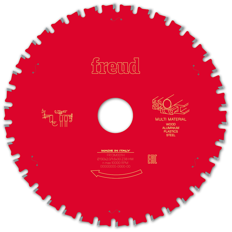 Kreissägeblatt für Multimaterial für Kapp- und GehrungssägenMaterialien: Holzbasierte Werkstoffe, Aluminium und sonstige NE-Werkstoffe, Kunststoffe und dünnwandige Stahlprofile