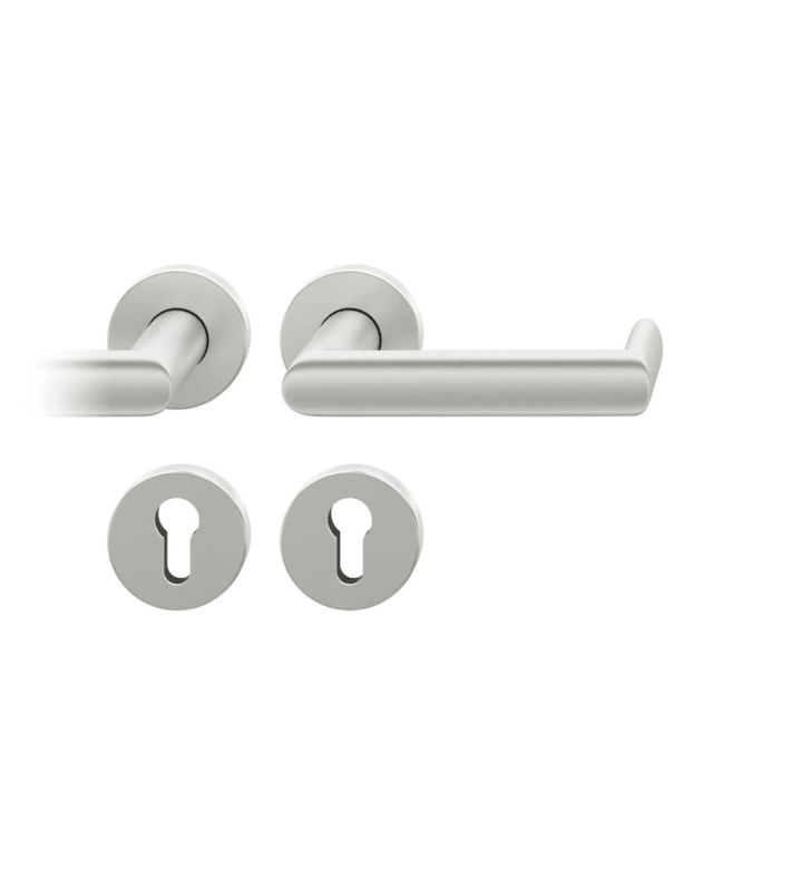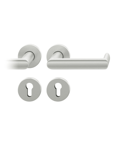 FS-AGL3-Drückergarnitur rechts, 9mm PZ Rundrosette, max. 35°. TS 39-48mm, Aluminium naturfarbig
