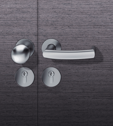 FS-AGL3-Wechselgrt.flächenb.li, 9mm PZ Rundrosette Knopf 0802, EN 179, max. 35°, TS 45-54mm, Edelstahl fein matt