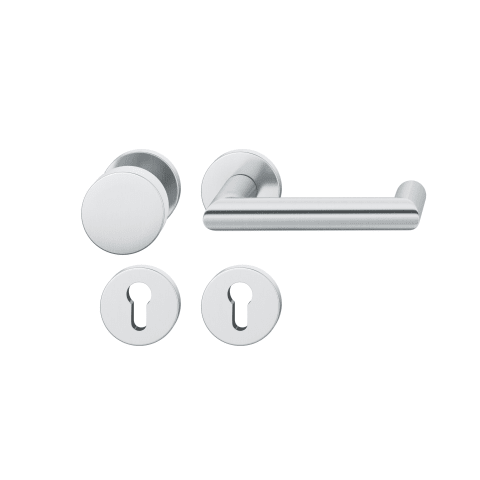 Feuerschutz-Wechselgarnitur mit AGL3-Technik. Mit Drückermodell 1016 und Knopf 23 0829. Vorteile der AGL3-Technik: • festdrehbare Lagerung AGL® • Ausgleichslagerung zum Ausgleich von Montage- und Fertigungstoleranzen • Benutzerkategorie 4/ EN 1906 mit mehr als 1 Mio. geprüfter Betätigungen • Einfache und verarbeiterfreundliche Montage • Mühelose Verschraubung dank Adapter-Halbgarnitur • Hochhaltemechanismus B • Ästhetischer Mehrwert durch präzise 0°-Stellung